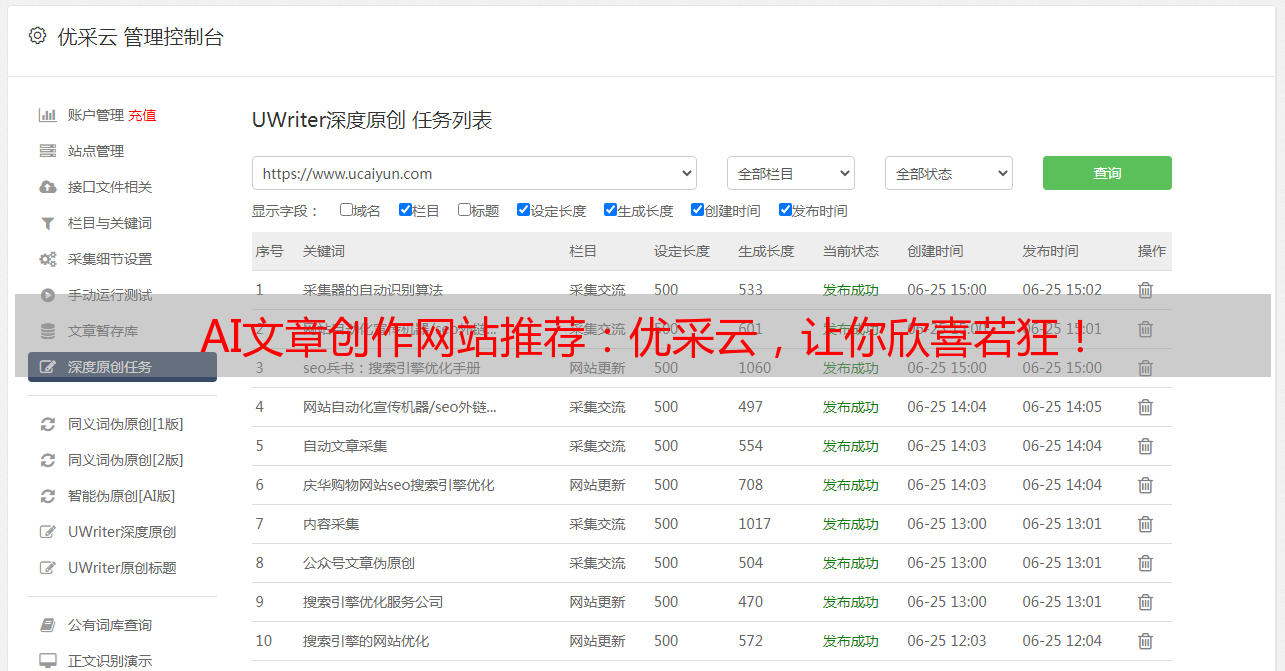 AI文章创作网站推荐:优采云,让你欣喜若狂!