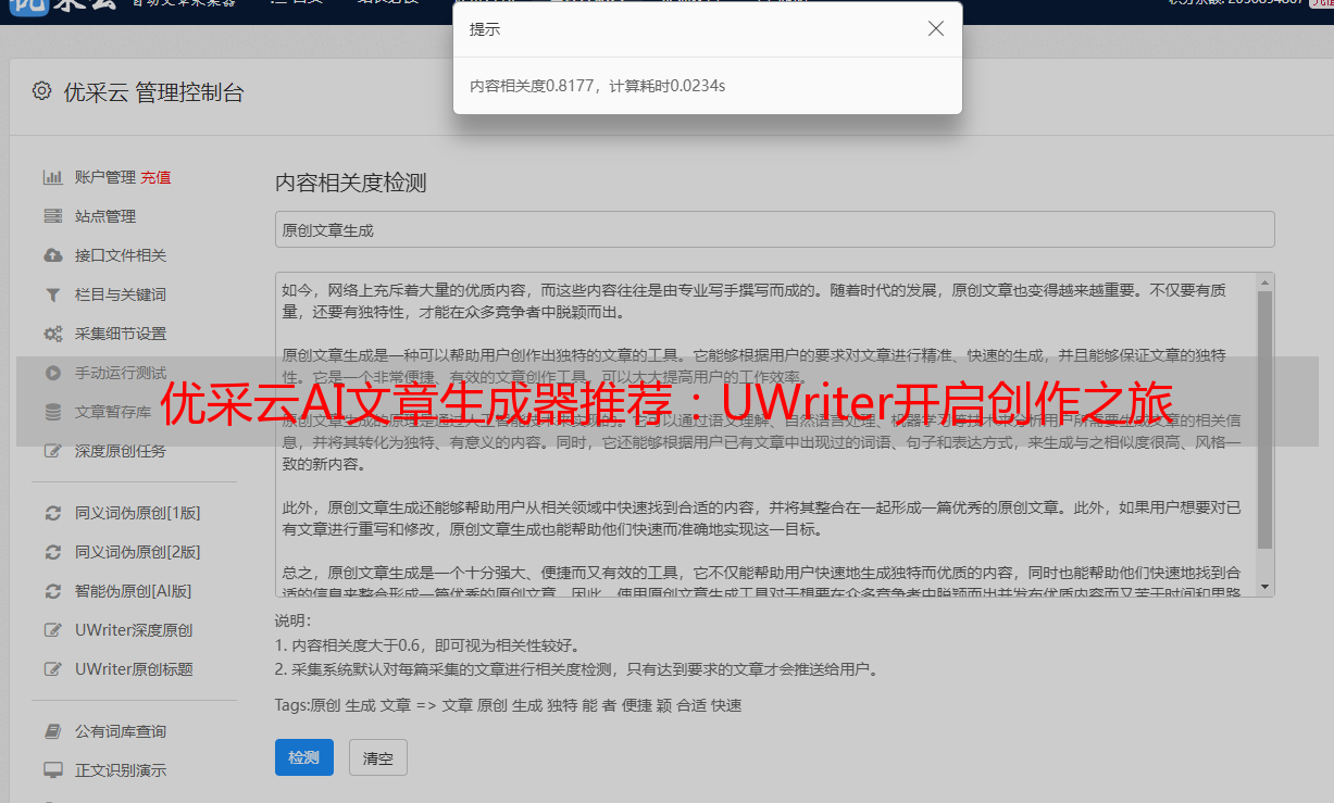优采云AI文章*敏*感*词*推荐:UWriter开启创作之旅