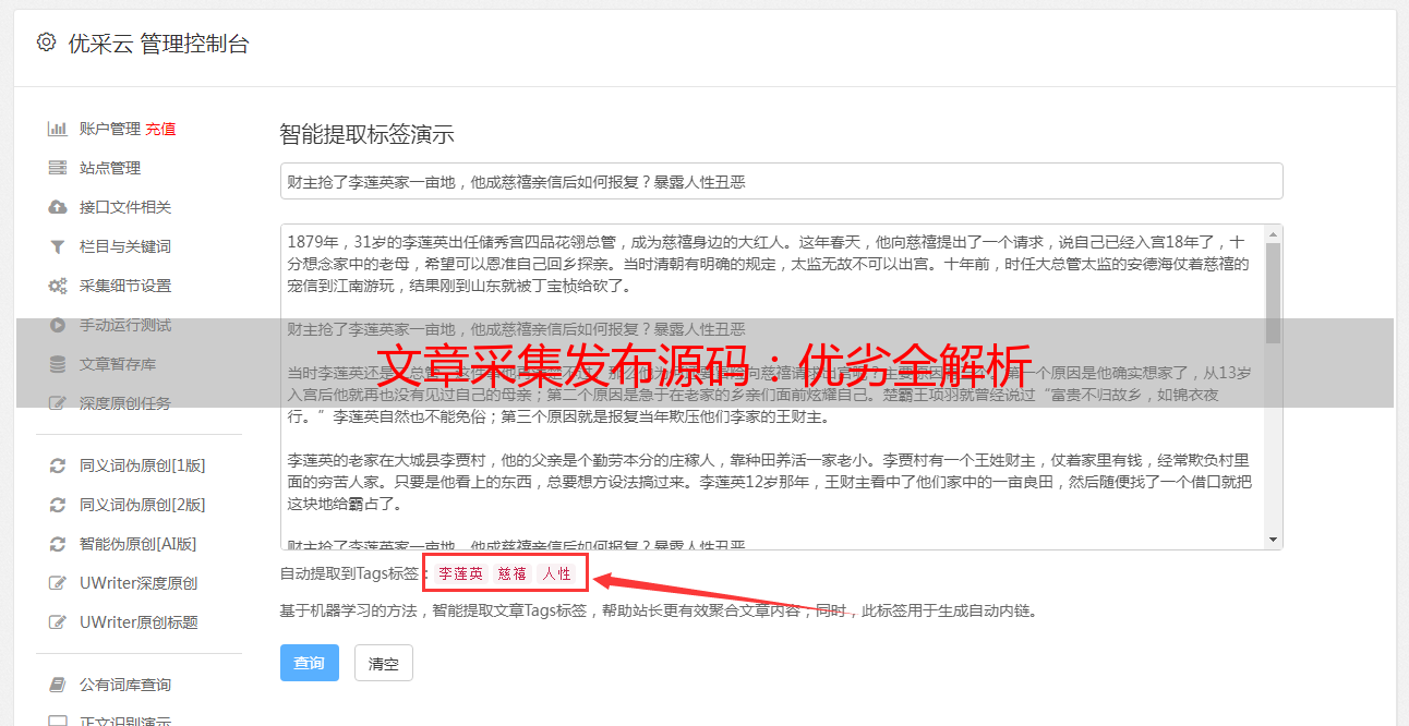 第七、SEO优化:优采云注重SEO优化,在发布文章时自动添加关键词、描述等元信息,并提供了友好的URL结构和页面布局。这些优化措施有助于提高文章在搜索引擎中的排名,增加流量和曝光度。