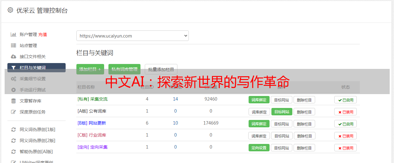 首次使用中文AI写文章时,我感到既兴奋又紧张。我打开了优采云的SEO优化平台(www.ucaiyun.com),点击进入AI写作模块。接下来,我输入了主题“亲身体验风格”,点击生成标题按钮,等待结果的出炉。