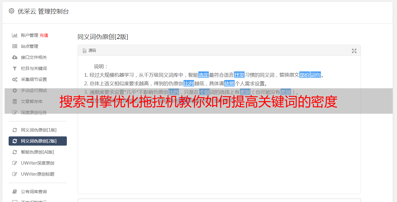 优采云 发布时间: 2021-06-16 03:21搜索引擎优化拖拉机教你如何提高关键词的密度