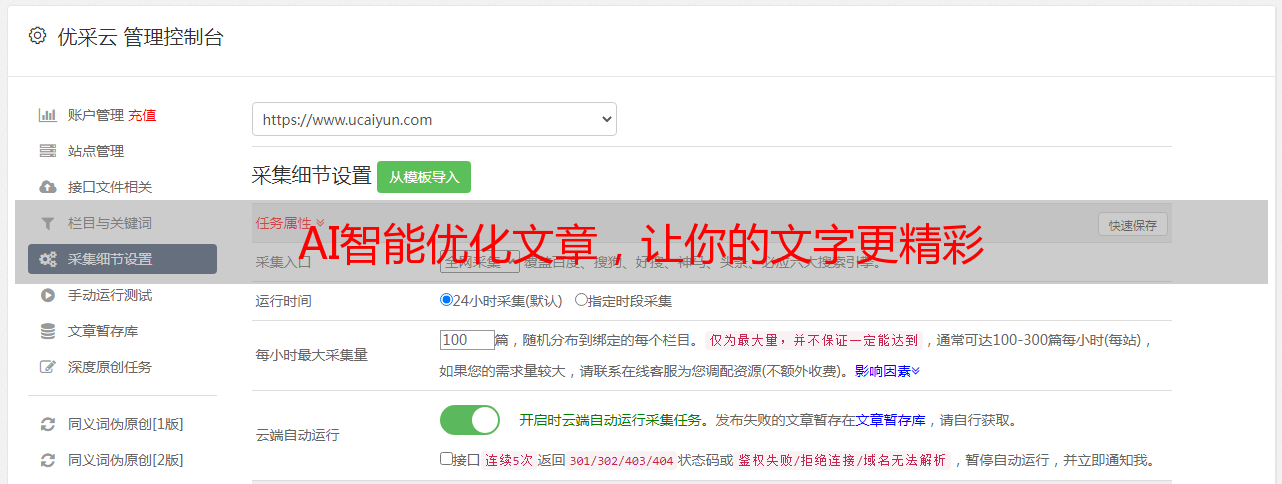 8.优采云:在我体验AI智能优化文章的过程中,我使用的是优采云平台。优采云是一家专注于AI技术研发的公司,他们的智能系统非常先进,提供了丰富多样的功能和服务。如果你也想体验AI智能优化文章,可以访问他们的官网www.ucaiyun.com了解更多信息。
