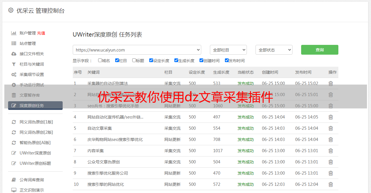 优采云的dz文章采集插件不仅能够提供高效的文章采集功能,还内置了丰富的SEO优化支持。插件会自动为采集到的文章生成优化友好的URL、标题和描述,并支持设置关键词密度、内链建设等功能,帮助网站提升在搜索引擎中的排名。