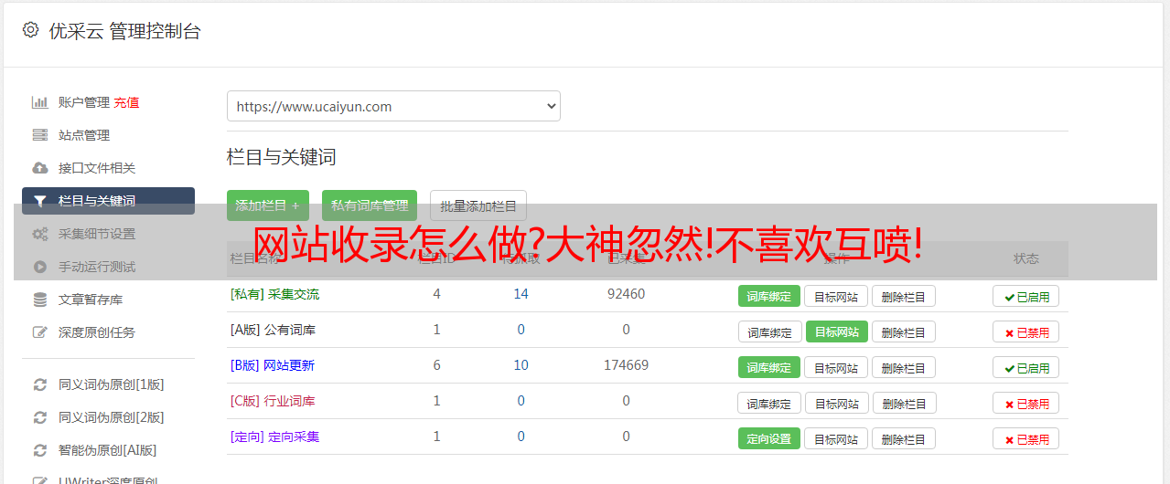 优采云 发布时间: 2021-06-16 05:21网站收录怎么做?大神忽然!不喜欢互喷!