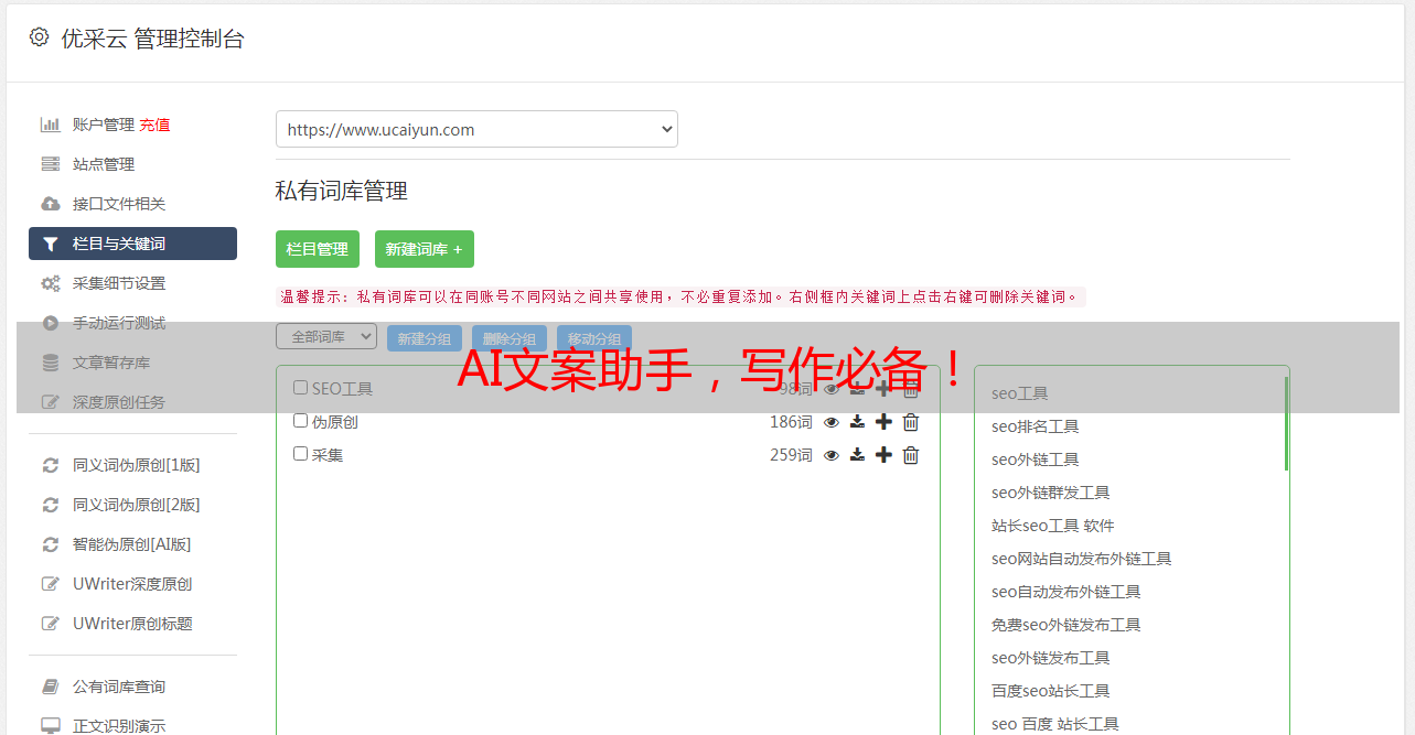 总结一下,AI文案写作App是一款功能强大、操作简便的利器,能够帮助你轻松提升文案水平,吸引更多读者。无论你是创业者、网店主还是自媒体作者,它都能为你带来意想不到的效果!快去优采云官网(www.ucaiyun.com)下载试用吧!别忘了在评论区告诉小编你的使用感受哦!#AI文案写作App##提升文案效果##轻松创作#。