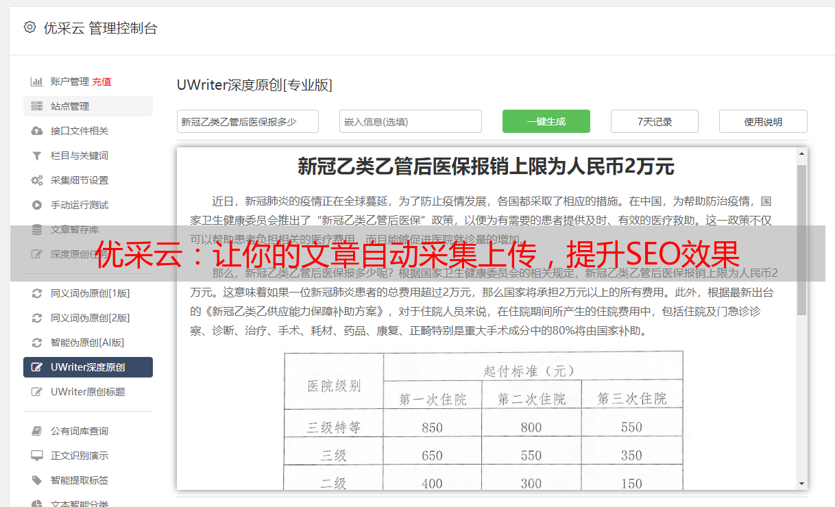 优采云:让你的文章自动采集上传,提升SEO效果