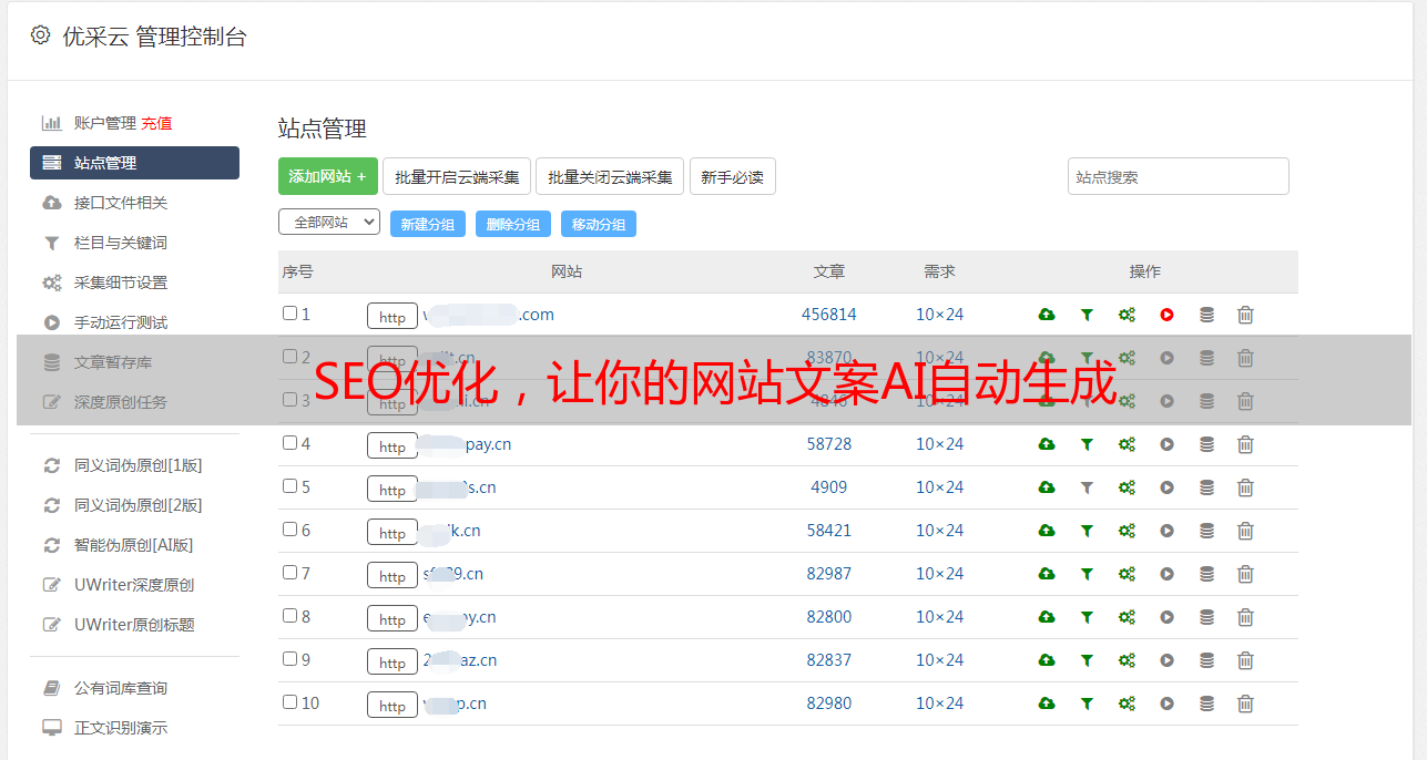 -全面服务:优采云提供全方位的SEO优化服务,包括关键词研究、网站结构优化、内容优化、外部链接建设等,确保企业在各个环节都能获得最佳效果。
