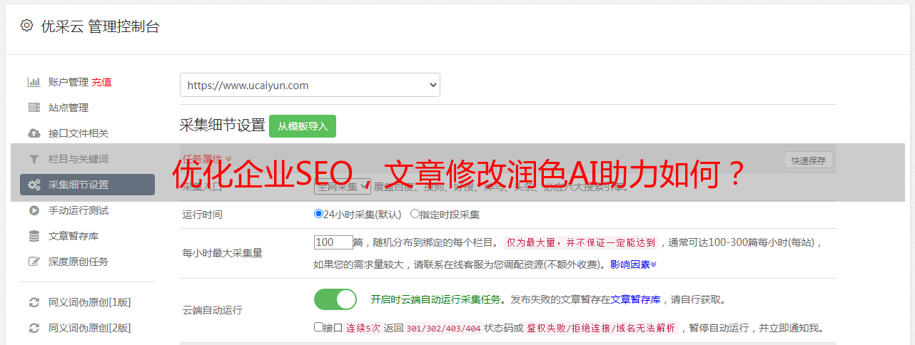 5.数据分析与优化:优采云会定期对企业网站的数据进行分析和监测,包括访问量、转化率等指标。他们会根据数据结果进行相应的优化措施,不断改进SEO策略,以达到更好的效果。
