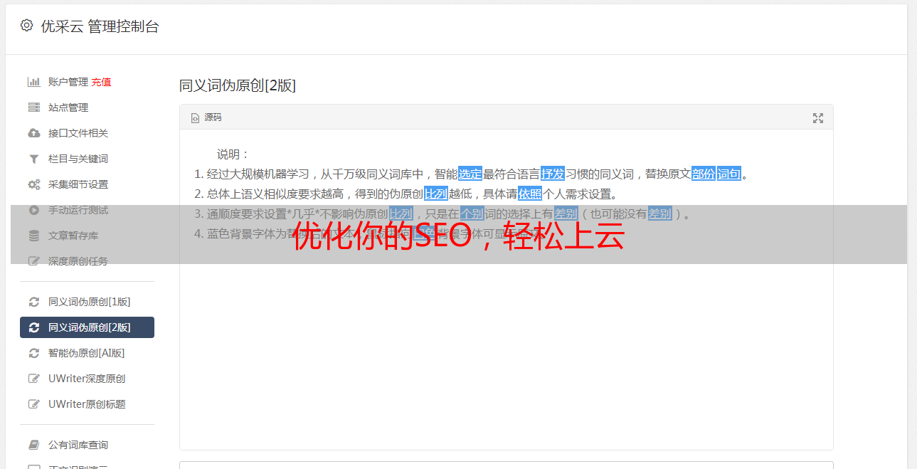 以上就是我在优采云上进行SEO优化时的经验分享。希望这些经验对你在优采云上进行SEO优化有所帮助。记住,SEO是一个需要不断学习和调整的过程,只有不断地提升自己才能在竞争激烈的网络世界中脱颖而出。愿你在优采云上取得更好的成绩!