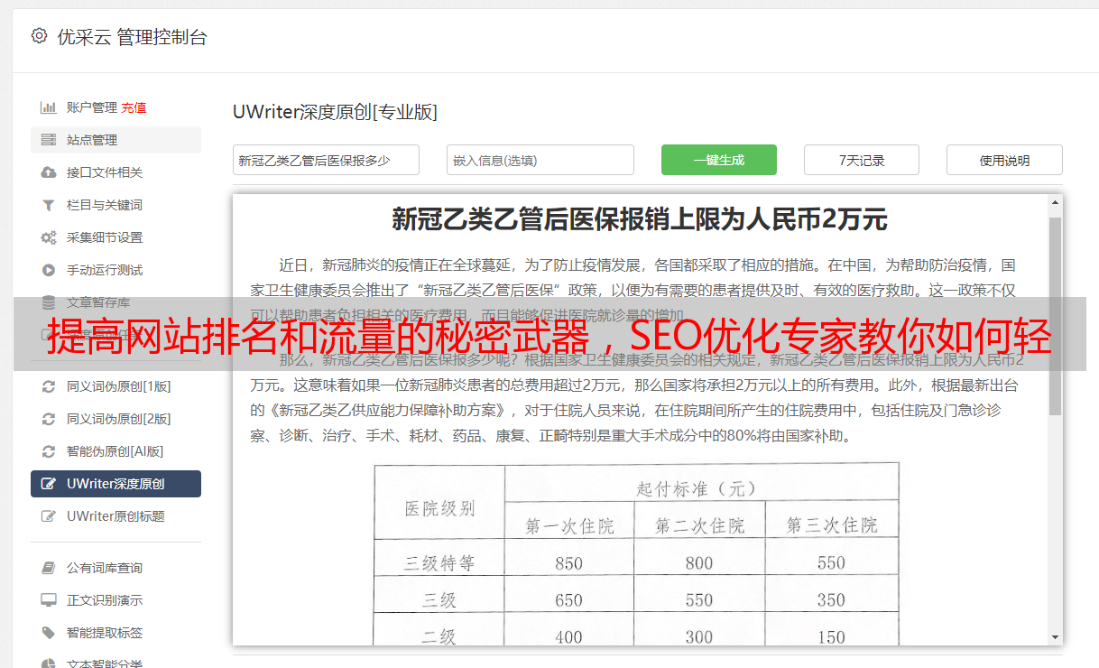 以上就是我亲身体验优采云的感受和见解。作为一名SEO优化专家,我强烈推荐大家使用这个工具来提升自己网站的排名和流量。相信只要你用心去尝试并灵活运用其中的功能,你也能够取得与我一样的好成绩!