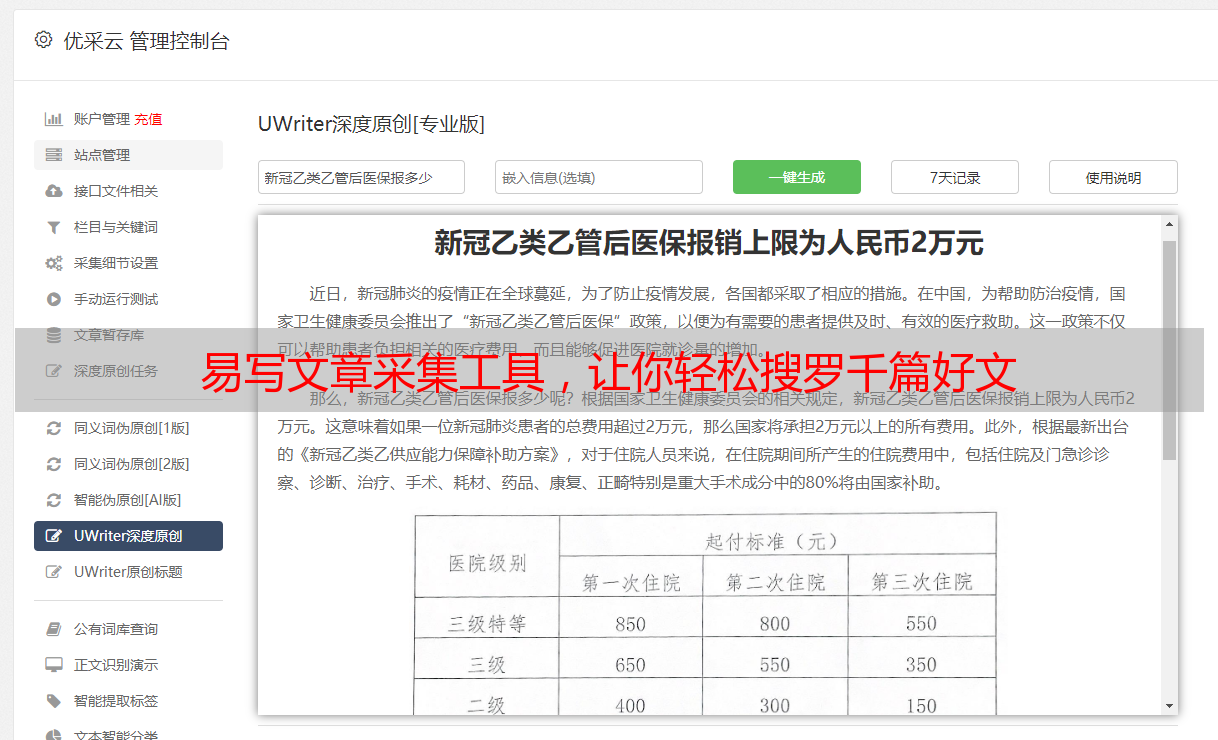 如果你想要提升写作效率,优采云绝对是你的不二选择。它将成为你写作路上的得力助手,帮助你轻松应对各种写作挑战。不要再被写作困扰,赶快试试优采云吧!