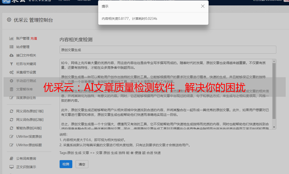 优采云:AI文章质量检测软件,解决你的困扰
