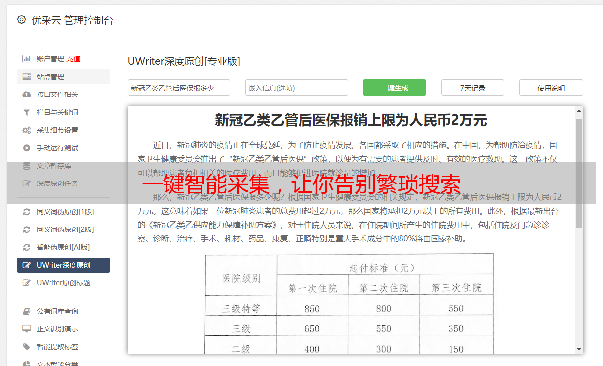 如果你是一个热爱写作的人,那么优采云绝对是你不可或缺的助手。它将帮助你节省大量时间和精力,在写作过程中事半功倍。无论是在创作新颖、引人入胜的文章,还是在解决写作难题上,优采云都能给予你最好的支持和帮助。