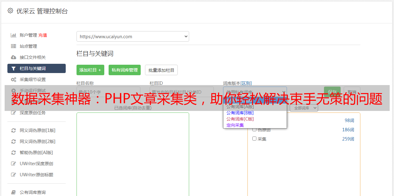 优采云作为一款专业的php文章采集类软件,能够帮助用户快速、准确地采集网上各类文章信息。它具有以下几个突出特点:
