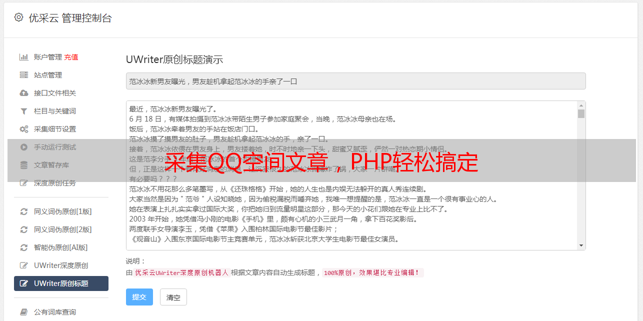 优采云 发布时间: 2023-10-25 20:17你是否曾经想过,如何通过PHP来采集QQ空间文章?这似乎是一个新奇的问题,但它却能激发我们的好奇心。在这个信息爆炸的时代,获取有价值的内容变得尤为重要。那么,让我们深入探讨一下吧。