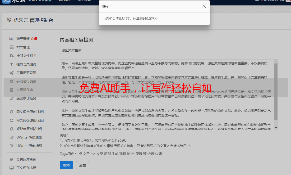 此外,优采云还提供了专业的写作指导和建议。它能够分析你的文章结构和语言表达,并给出针对性的改进意见。这有助于提升你的写作水平,使你的文章更加流畅和有说服力。