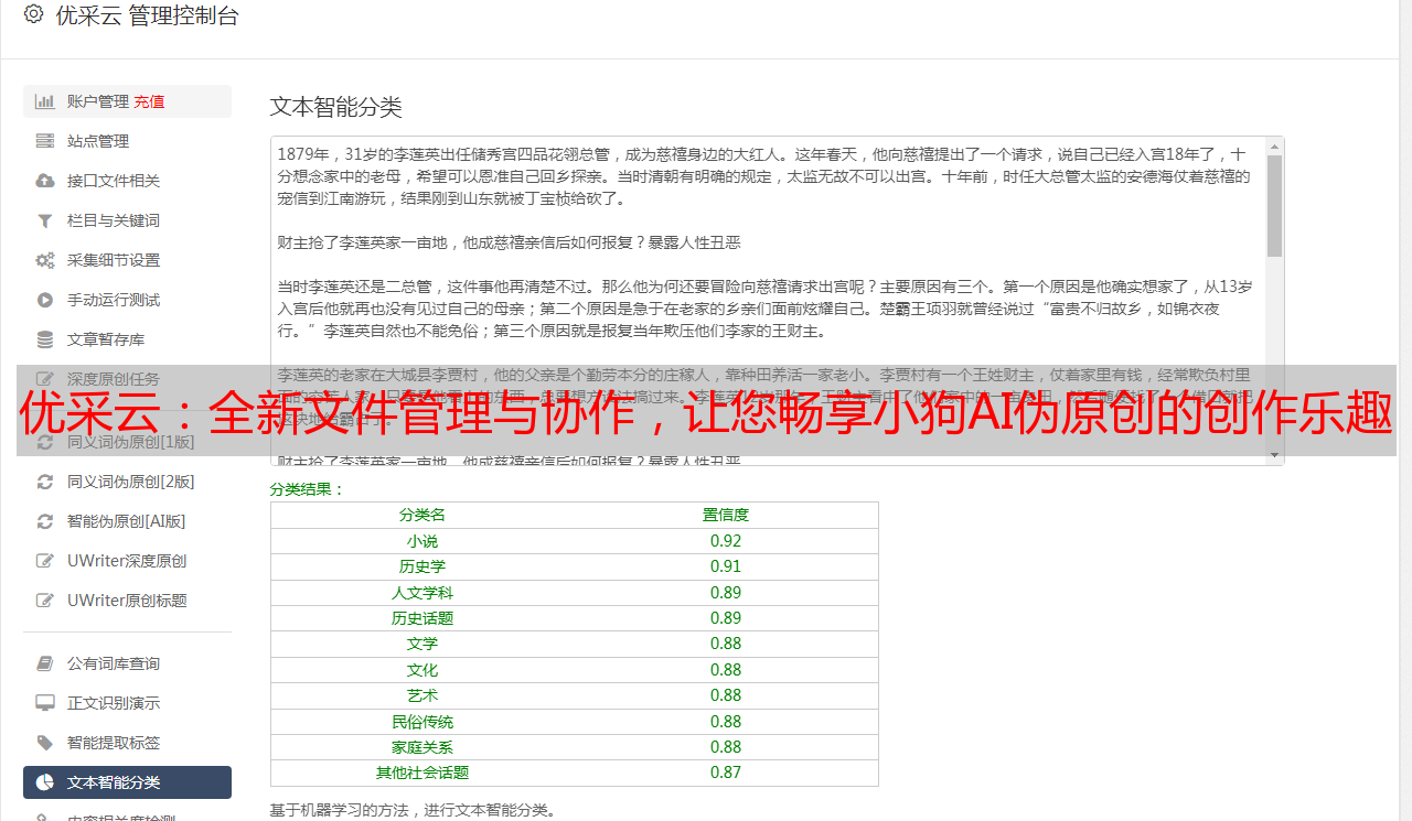 优采云:全新文件管理与协作,让您畅享小狗AI伪原创的创作乐趣