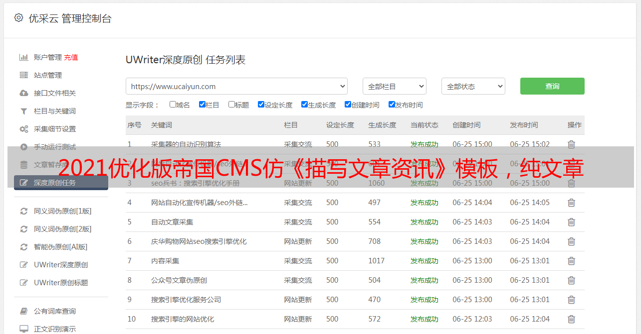 优采云 发布时间: 2021-06-17 03:192021优化版帝国CMS仿《描写文章资讯》模板,纯文章