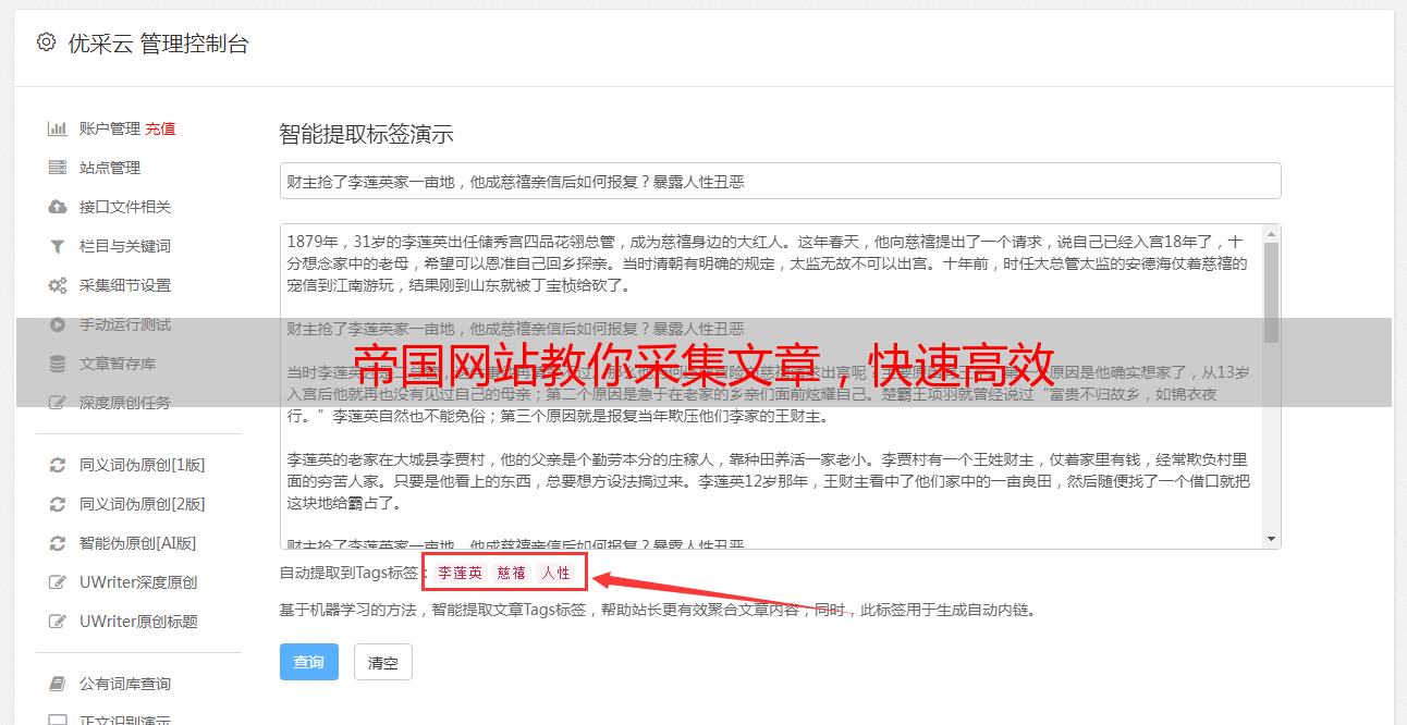 帝国网站采集工具不仅提供了强大的采集功能,还支持对采集结果进行处理和编辑。你可以对采集到的文本进行格式化、去除冗余信息、添加标签等操作,以便更好地整理和利用所采集的内容。