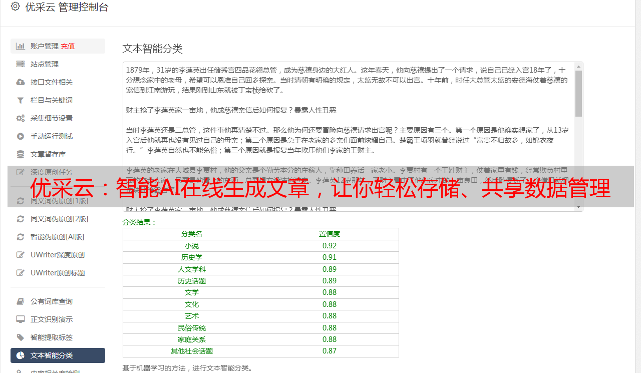 优采云:智能AI在线生成文章,让你轻松存储、共享数据管理