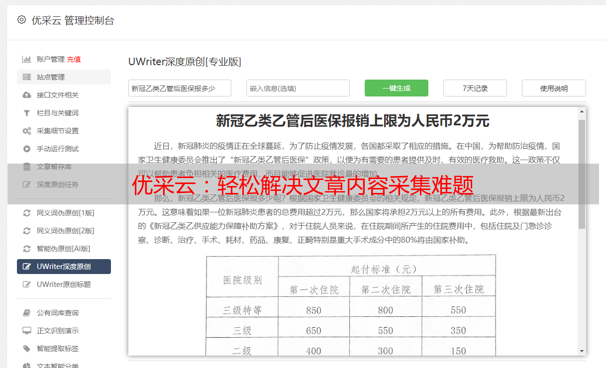在写作过程中,提供高质量的内容是非常重要的。然而,我们常常会面临一个难题:如何快速获取到可靠、有用的信息?这就需要一个能够采集文章内容的工具。优采云正是这样一款软件,它可以帮助你轻松获取各种类型的文章素材。