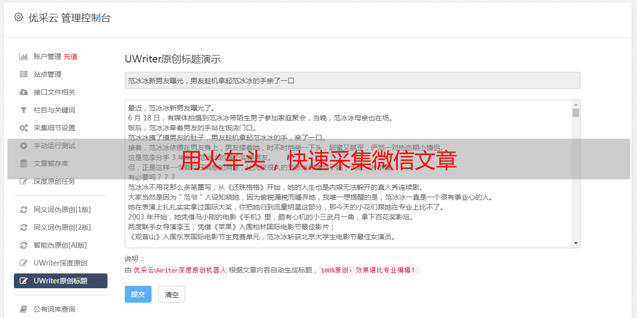 现在,你已经了解了优采云这款强大的软件,相信你对于微信文章采集有了更深入的理解。如果你需要快速高效地获取微信文章信息,不妨试试优采云吧!它将为你带来更多便利和惊喜。