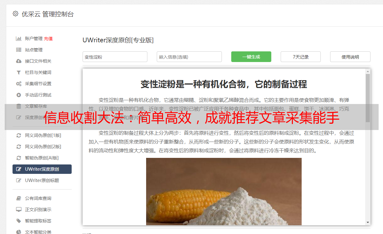 优采云AI内容工厂为我们提供了一个便捷、高效的方式来采集推荐文章。通过个性化定制、多维度搜索和精选推荐等功能,我们可以轻松找到符合自己需求的优质内容。同时,在阅读的过程中,我们还能够交流分享、提升写作技巧,并逐渐构建起自己的知识体系。让我们一起成为信息的收割者吧!