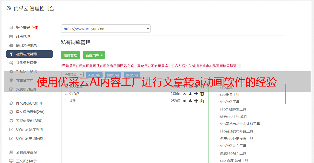 使用优采云AI内容工厂进行文章转ai*敏*感*词*软件的经验