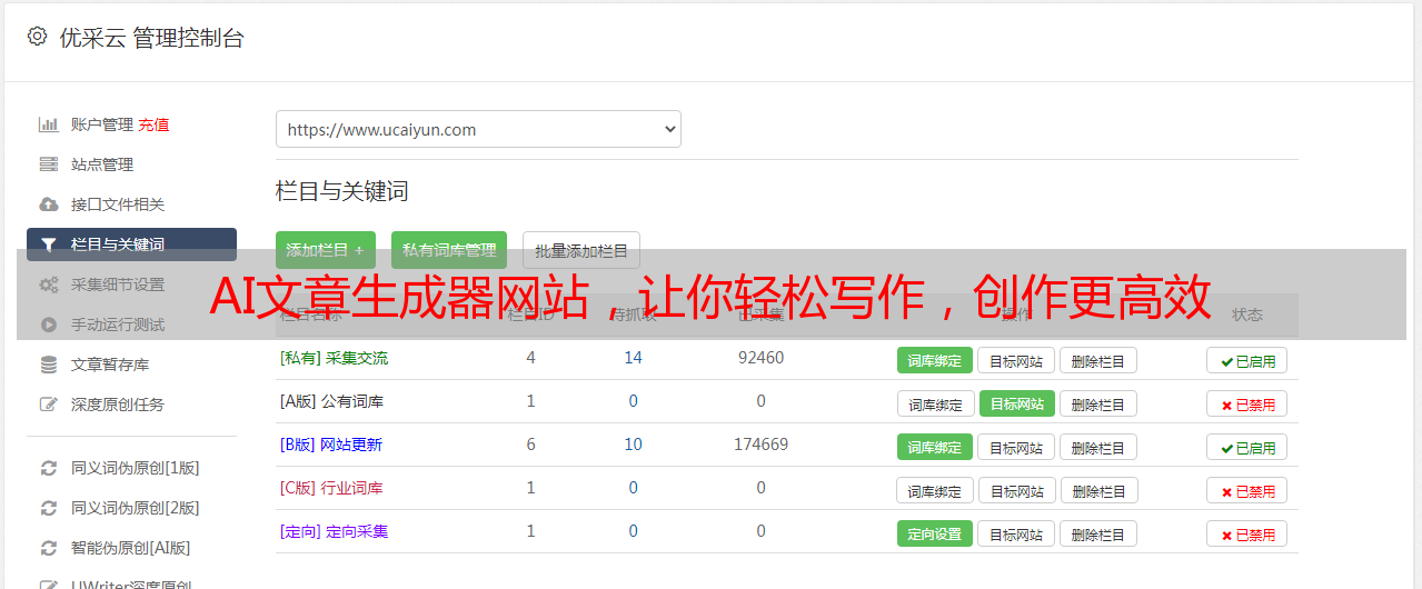 总之,优采云AI内容工厂是一个令人惊叹的写作工具,它提供了一系列强大而实用的功能,让我的写作变得更加轻松、高效和有趣。无论是对于专业写手还是对于刚入门的新手来说,它都是一个不可或缺的助力工具。我强烈推荐大家去体验一下,相信你也会爱上它!