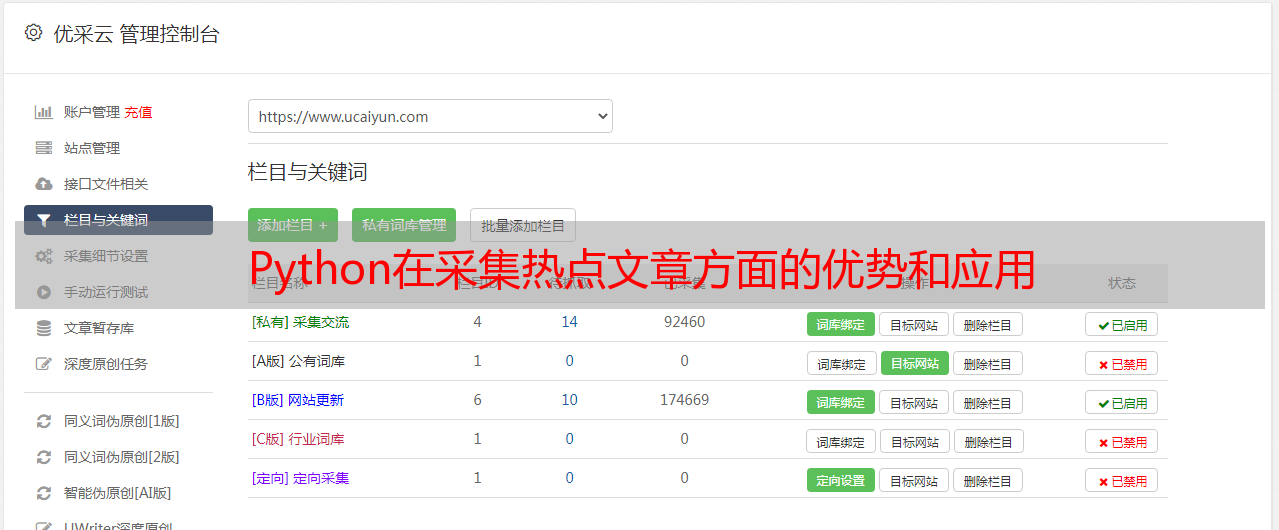 在采集热点文章的过程中,我们可以借助优采云AI内容工厂这一强大工具。它基于Python开发,集成了各种数据分析和挖掘功能,可以帮助我们更加高效地采集、处理和分析热点文章。无论是舆情监测、市场调研还是信息挖掘,优采云AI内容工厂都能够提供全面支持。