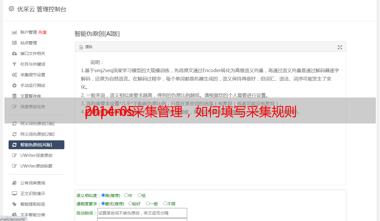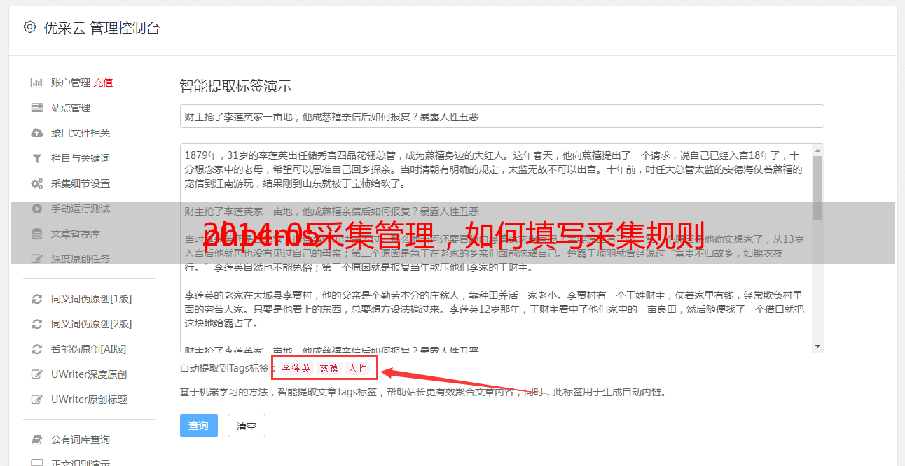 文章采集系统颠覆了传统的采集方式和过程,将采集规则与采集界面分开,规则设置更加简单. 只有具有基本技术知识的人员才需要设置相关规则.
