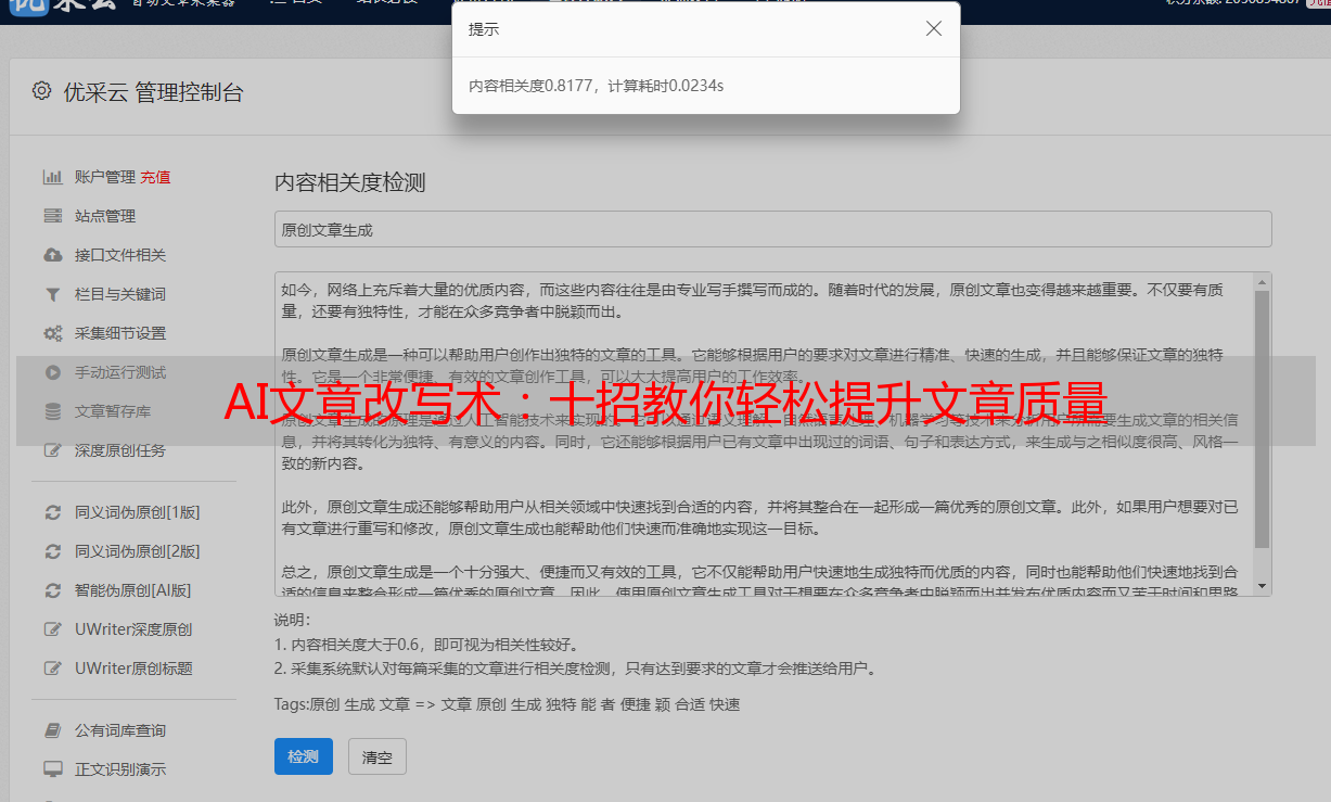 通过以上十点方法,我相信你也能够在使用优采云AI内容工厂进行文章改写时取得更好的效果。记住,改写AI文章需要耐心和细心,但只要勤奋努力,一定能够创作出独特、吸引人的优秀作品!