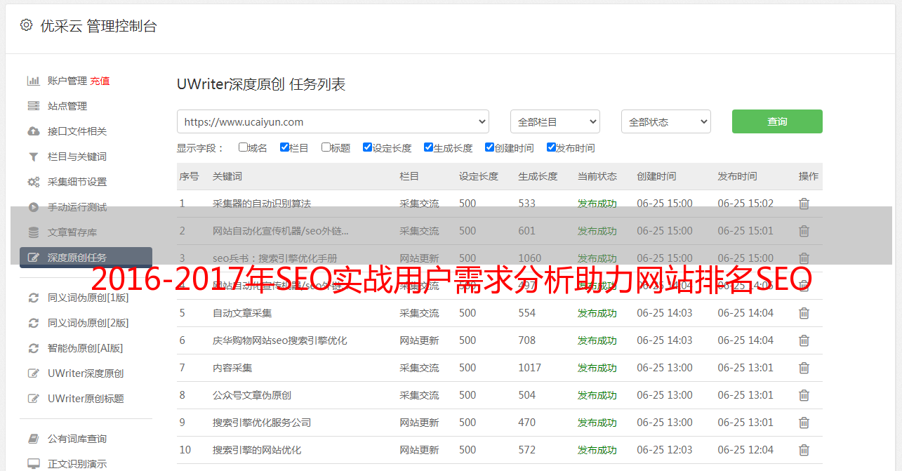 2016-2017年SEO实战用户需求分析助力网站排名SEO