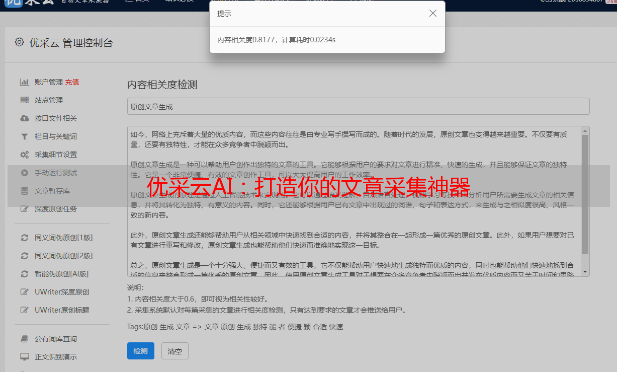优采云AI内容工厂相比传统的手动采集方式具有以下优势: