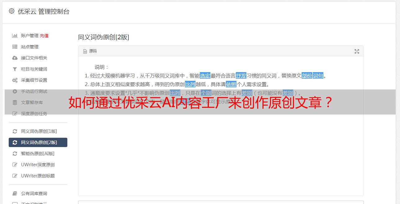 优采云 发布时间: 2023-11-15 20:55作为一名经验丰富的内容创作者,我深知写作的重要性和挑战。在这篇文章中,我将与大家分享我的经验和见解,让你了解如何通过优采云AI内容工厂来创作原创文章,并且还能免费享受这项服务。