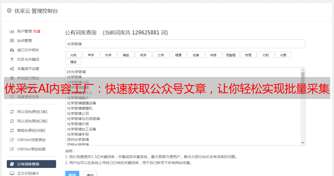 优采云AI内容工厂:快速获取公众号文章,让你轻松实现批量采集