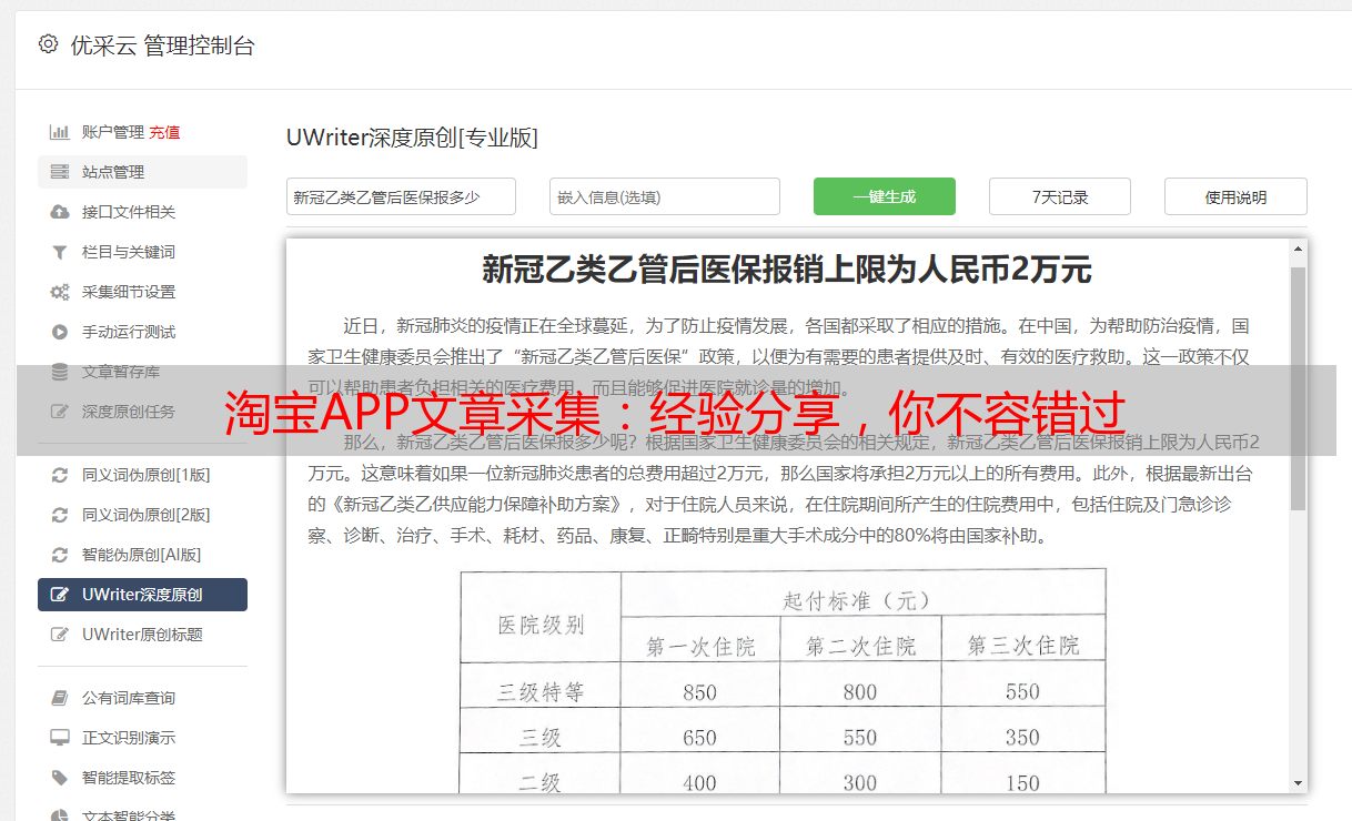优采云AI内容工厂是一款非常实用的采集工具,它能够智能识别淘宝APP页面并提取文章内容。通过这个工具,我们可以快速高效地采集到所需的文章信息。