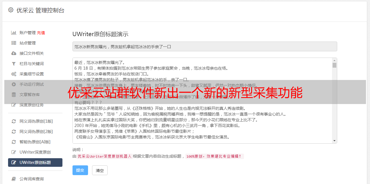 优采云站群software 才是真正的站群software。使用优采云软件“让采集content变成原创content”