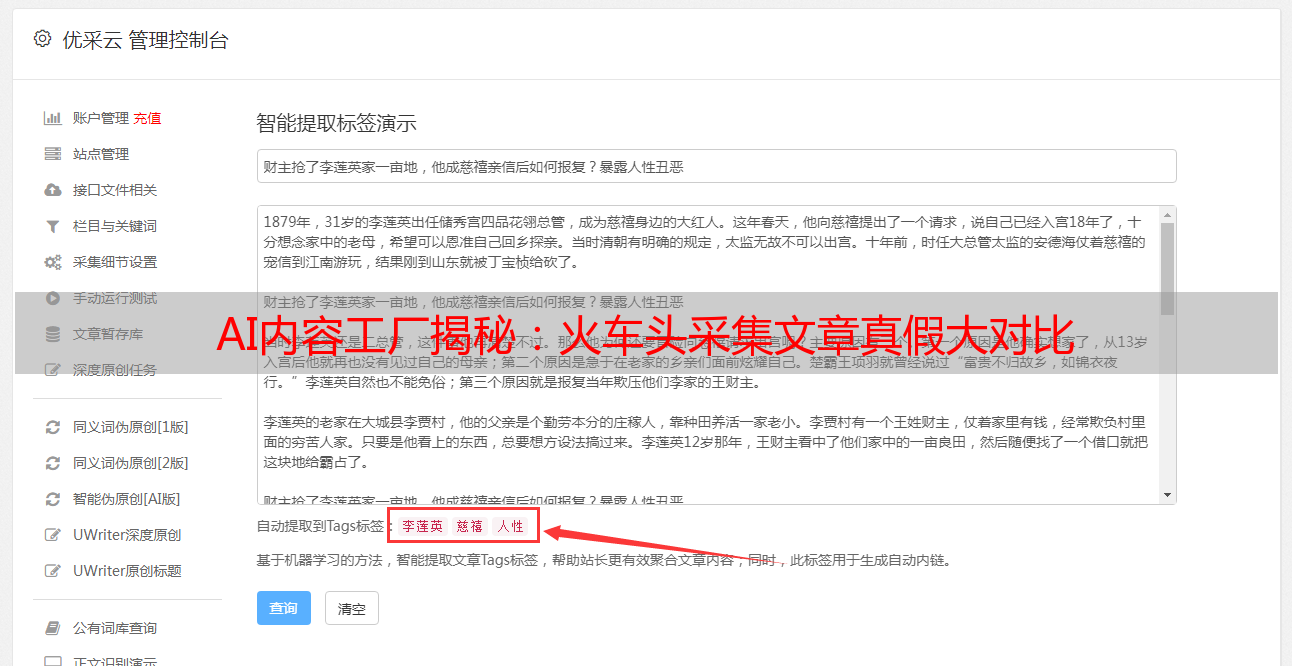AI内容工厂揭秘:火车头采集文章真假大对比