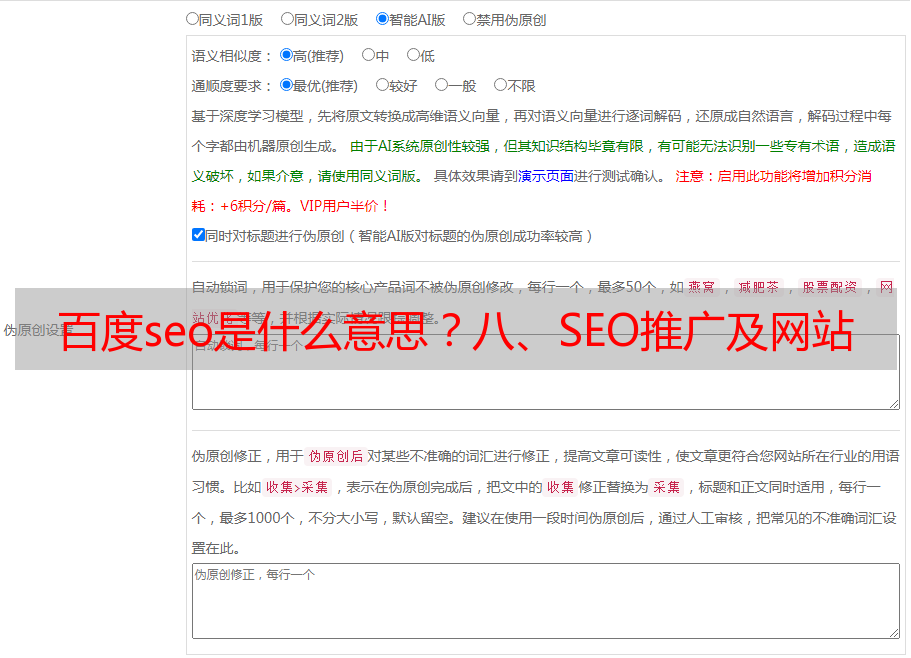 优采云 发布时间: 2021-06-18 19:41百度seo是什么意思?八、SEO推广及网站内部优化及软文撰写