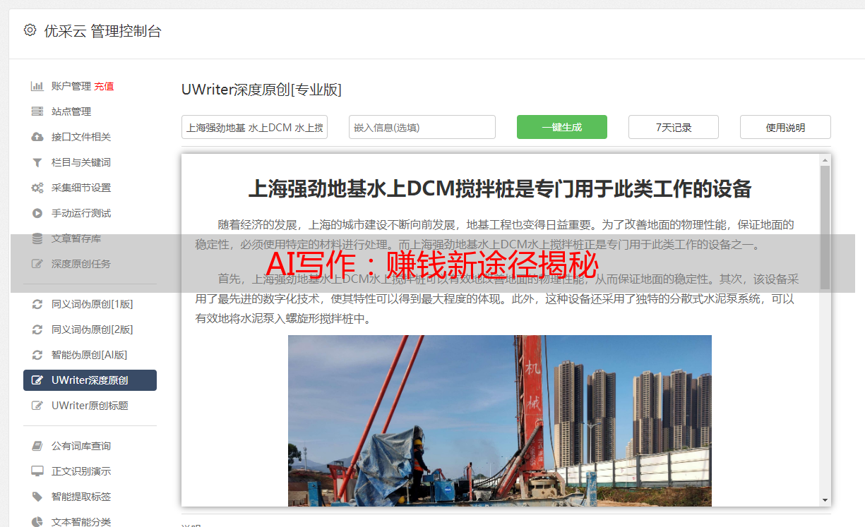 优采云 发布时间: 2023-12-09 00:20现代社会,随着人工智能技术的迅猛发展,越来越多的人开始关注AI写作这一新兴领域。大家都想知道,利用人工智能技术进行写作是否真的能够赚钱呢?今天,我作为一名优采云AI内容工厂的高级算法工程师,将为大家解答这个问题。