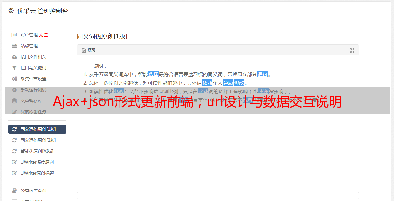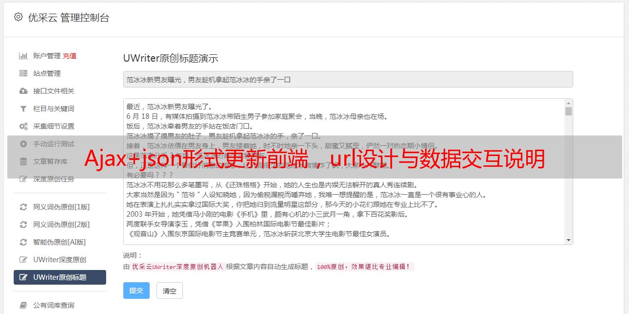 优采云 发布时间: 2021-06-18 21:00Ajax+json形式更新前端,url设计与数据交互说明