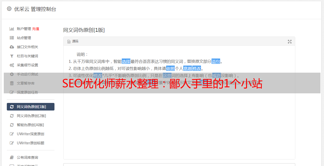 优采云 发布时间: 2021-06-18 21:25SEO优化师薪水整理:鄙人手里的1个小站