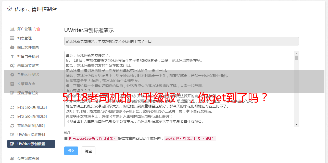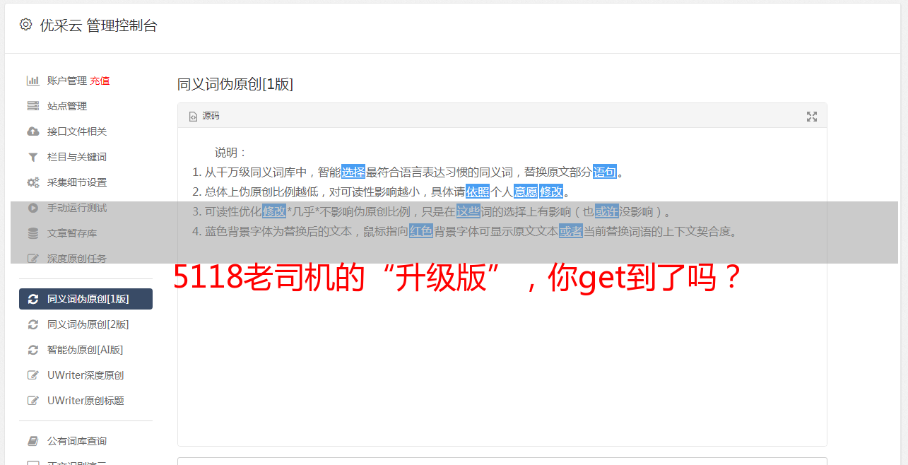 显然是一个 SEO 人才,但我不得不埋头于文案!每天产出长尾词对SEOer来说是一件痛苦的事情。 伪原创工具只是为了提高效率,但是一般因为可读性差,需要花一些精力在手动调整上。智能原创插件的优势在于,如果选择1缩短内容,可以重写输出3个优质内容,直接复制。如果需要修改100字以内,非常方便,不会眼花缭乱。