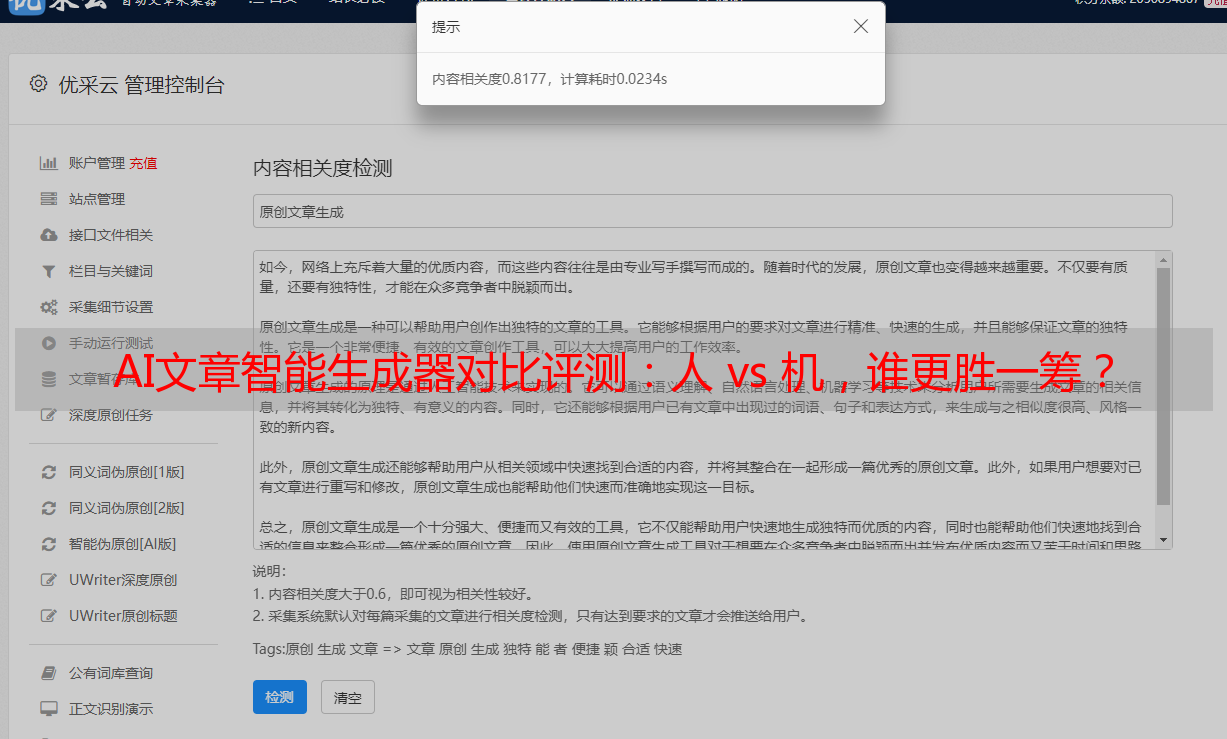 优采云 发布时间: 2023-12-11 03:28AI文章智能*敏*感*词*续写对比评测:一场“人 vs 机”的较量