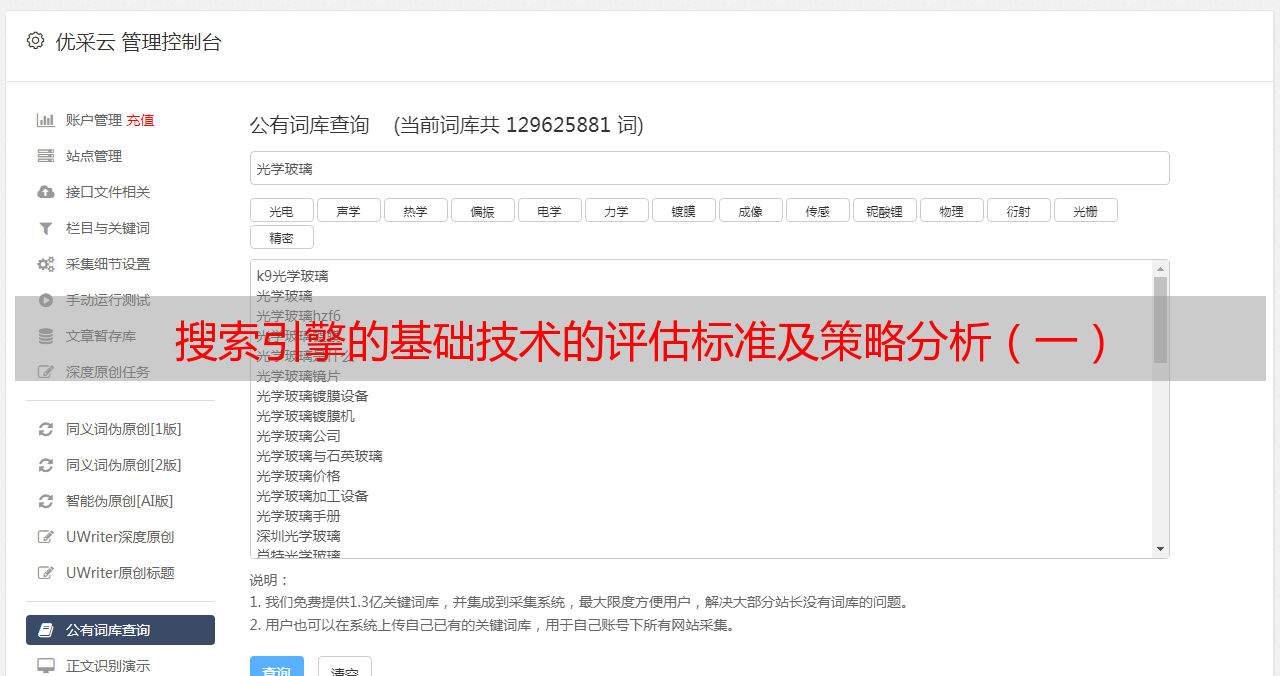 优采云 发布时间: 2021-06-19 01:26搜索引擎的基础技术的评估标准及策略分析(一)