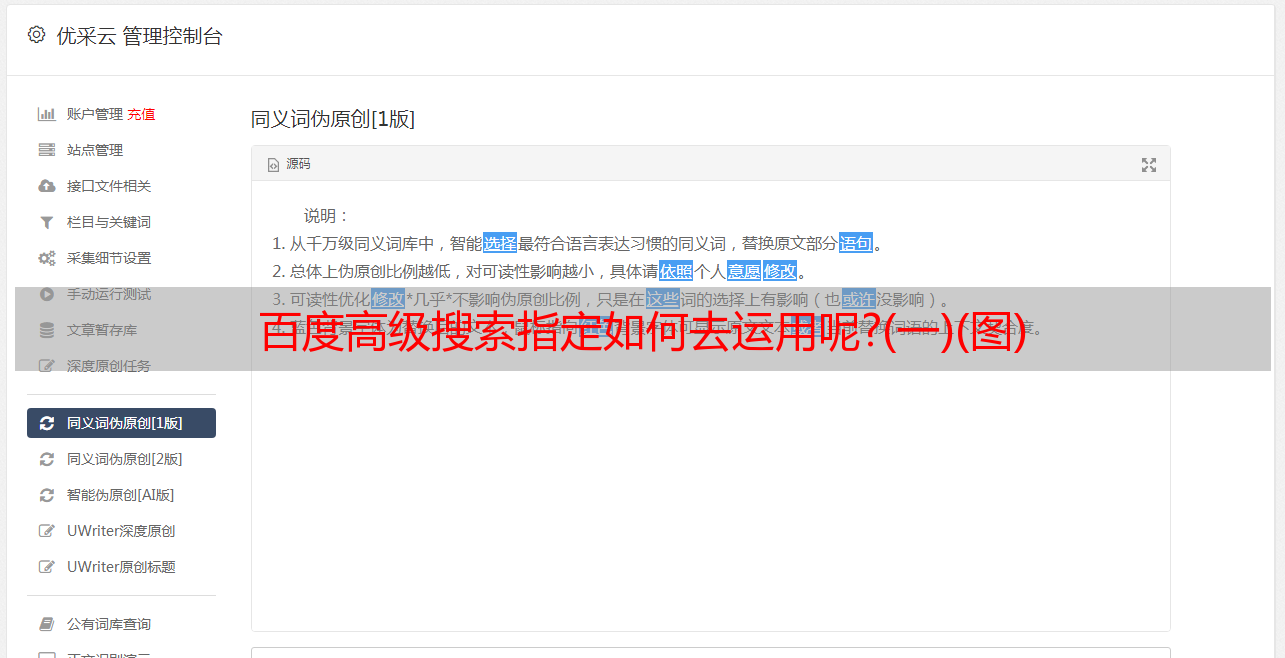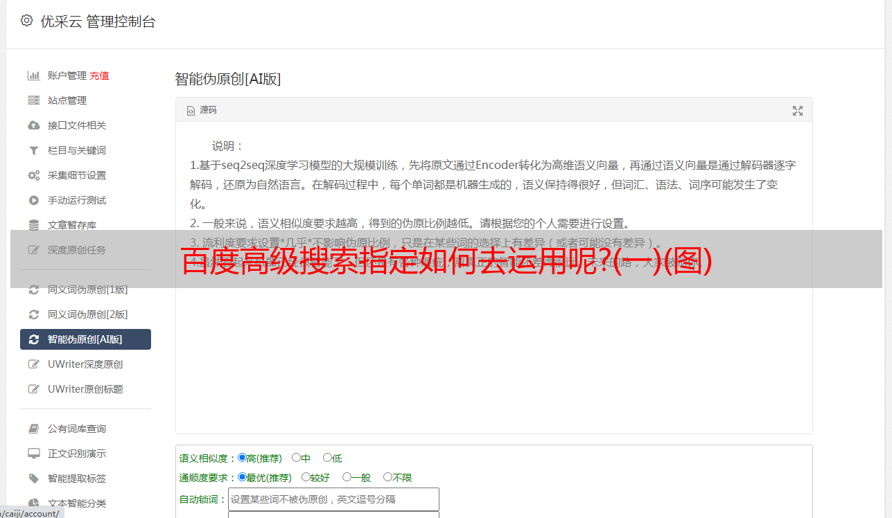 优采云 发布时间: 2021-06-19 02:19百度高级搜索指定如何去运用呢?(一)(图)