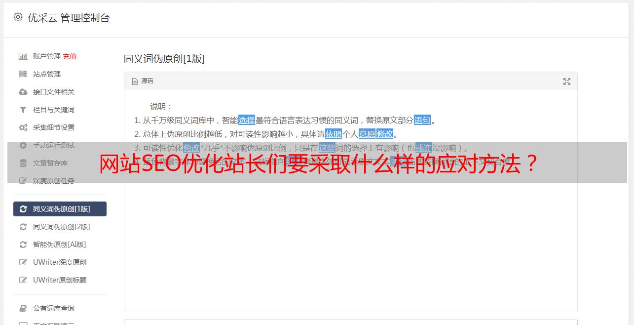 优采云 发布时间: 2021-06-19 05:00网站SEO优化站长们要采取什么样的应对方法?