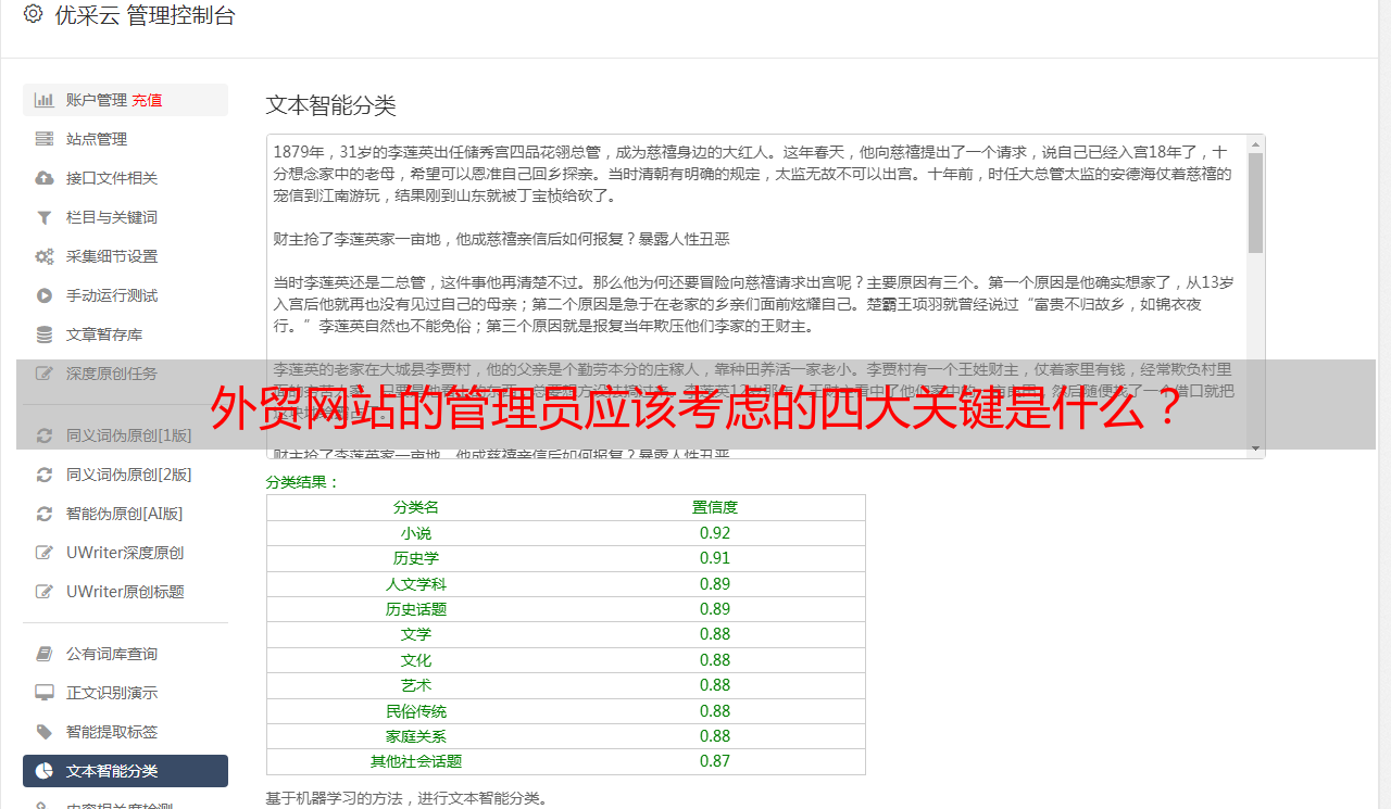 优采云 发布时间: 2021-06-19 05:08外贸网站的管理员应该考虑的四大关键是什么?