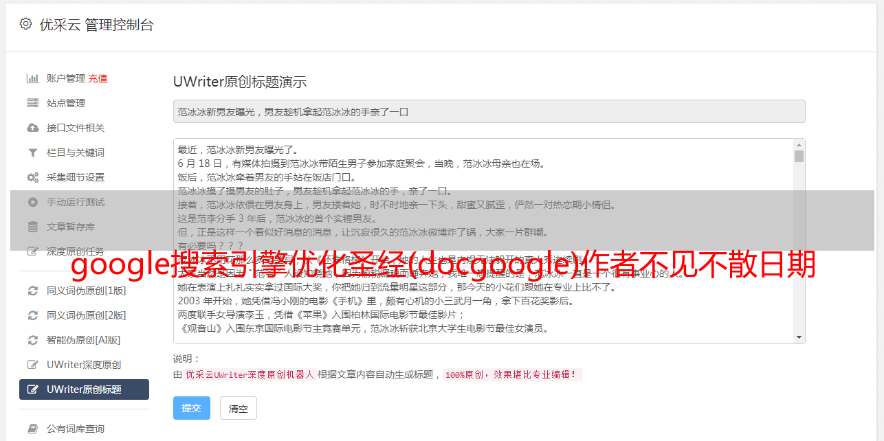 不要使用虚拟主机,最好使用自己独立的IP地址,以确保您的网站可以被搜索引擎蜘蛛索引。所有网页都应该连接到您网站 中的其他网页。所有网页都远离主页。您不应单击超过两次。所有内容页面也应链接回主页。所有页面上都存在的菜单系统应该链接到网站 的主要部分。不要等到你完成了一个高质量的网站打开它,打开一个坏的网站比不打开还要糟糕网站你想要的是一个优秀的网站申请登录打开目录。如果你有预算,申请并提交给雅虎等付费的如果你没有预算,你可以尝试雅虎的免费提交,但不要抱太大希望j网站submit。将主页提交给 Google 和其他搜索引擎,然后在接下来的六个月内忘记它。是的,提交并忘记它。 k 记录和跟踪 使用高质量的日志分析软件,可以记录访问者的来源。如果您的托管服务提供商未提供访问者来源,您应该使用其他托管服务提供商。观察蜘蛛。从搜索引擎观察蜘蛛。确保蜘蛛在爬行。如果你的整个网站 都没有,你应该检查你所有的链接系统以确保蜘蛛可以找到你的整个网站 如果搜索引擎需要两次检索你的网站,不要害怕来许多搜索引擎说,发现和抓取你的网站m 主题类别可能需要六个月的时间。几乎每个行业都有自己的权威类别来提交给这些类别。链接到 Google 版本的开放类别。看着你。 网站的行业寻找那些可以免费交换链接的网站,这些网站交换链接需要选择专题网页上的一段内容作为链接的文字。如果那些网站站长不愿意和你交换链接也没关系。每天继续与新的网站交换链接。一封简短的个性化电子邮件就足够了。如果某个网站不想链接到您,请不要当真-实际上迟早有一天他们会满足的。每天一页优质内容网页。有效且具有话题性的文章 始终是避免过多博客式个人事物的最佳方式。你应该多写一些文章Type 普通观众愿意阅读的内容 提高你的写作技巧。学习适合在线人群的写作风格。多段短句。快速阅读内容。大多数网站 访问者不是阅读而是浏览。这就是为什么短文章 很重要。如果看到一大片没有分段的文章,很多人会立即按下返回键。人们不会浪费 15 秒钟来了解您精美的菜单系统是如何工作的。在大公司的网站 上放一个flash 菜单系统并不意味着你必须这样做。标题用黑体字强调重点,也逻辑上把秘密武器和所谓的秘密武器分开,或者今天有用的东西明天没用的东西,不要用任何看起来像垃圾的东西,任何东西*敏*感*词*或接近作弊的任何东西 q 导出链接 当您收到链接交换请求时,请检查对方的网站不要简单地链接回来并通过谷歌检查他们的网站 并查看他们的 PR 值。不要链接到有问题的网站 和低质量的网站 确保另一个网站 和你的一样